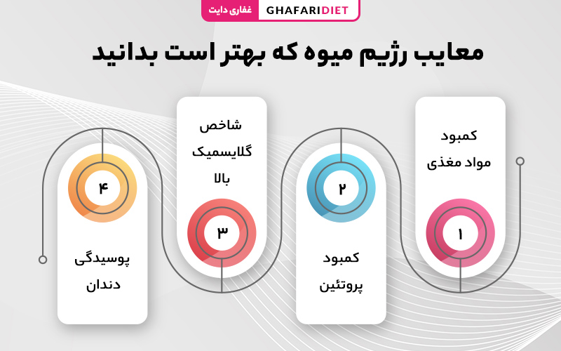 رژیم میوه به دلیل خاصیت شگفت انگیز میوه ممکن است برای بسیاری از افراد یک تغییر بزرگ و جذاب در سبک زندگی باشد اما به همراه آن محدودیت هایی نیز وجود دارد که باید جدی گرفته شوند.