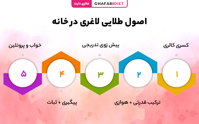 برای لاغری در خانه، باید روی رژیم غذایی سالم و کم کالری تمرکز کنید. می توانید غذاهایی مانند سالاد، ماهی، مرغ، سبزی ها، میوه ها و مواد غذایی با پروتئین بالا را در رژیم غذایی خود قرار دهید.