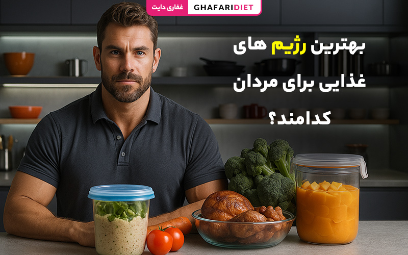 نکته: هیچ رژیمی برای همه مردان بهترین نیست. انتخاب رژیم باید بر اساس سن، وضعیت جسمانی، سطح فعالیت، اهداف (کاهش وزن، عضله سازی یا سلامت عمومی) و شرایط پزشکی صورت گیرد.